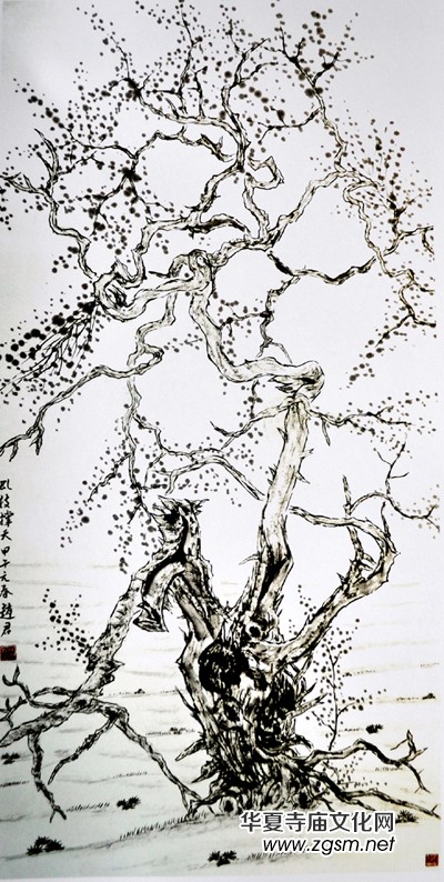 趙君先生熱愛生活,提倡保護(hù)自然,對破壞自然,砍伐森林給人類造成的后果,深表憂慮。為此趙君先生認(rèn)真考察祖國各地的老樹、古樹樹生長的情況,經(jīng)過現(xiàn)場寫生取景得到大量素材,先后刻畫了兩卷近50米的百樹圖,表現(xiàn)了古樹、老樹、枯樹、殘樹的真實(shí)情況,借此喚醒人們對自然的關(guān)注。