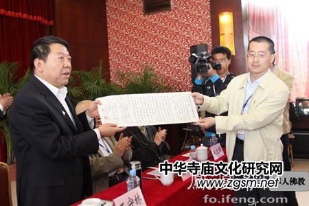 2011年5月12日,釋迦塔佛教文化研討會開幕式在山西應(yīng)縣拉開帷幕。中國佛教協(xié)會常務(wù)理事、副秘書長、廣濟寺方丈演覺法師,中國佛教圖書文物館館長圓持法師,中國社會科學(xué)院榮譽學(xué)部委員楊曾文,北京大學(xué)佛教研究中心主任姚衛(wèi)群,北京大學(xué)哲學(xué)系、宗教系副主任李四龍,中國社會科學(xué)院世界宗教研究所研究員黃夏年,中國佛教文化研究所所長宋立道,中國佛教協(xié)會理事王孺童,中國社會科學(xué)院世界宗教研究所副研究員紀(jì)華傳,中國人民大學(xué)哲學(xué)院教授溫金玉,中國人民大學(xué)哲學(xué)院副教授宣方,北京大學(xué)哲學(xué)系、宗教學(xué)系副教授王頌,北京大學(xué)哲學(xué)系、宗教學(xué)系副教授周學(xué)農(nóng),中國佛教文化研究所特約研究員、山東省汶上縣宗教事務(wù)局副局長汪海波,遼寧省朝陽市宗教局肖景林,陜西省法門寺博物館副研究員李發(fā)良等60余位國內(nèi)外高僧大德和權(quán)威佛學(xué)研究專家齊聚一堂,將對山西應(yīng)縣木塔的建筑緣起、建筑風(fēng)格,以及木塔與佛教的關(guān)系,木塔的佛教文化價值,一雙佛牙舍利應(yīng)縣示現(xiàn)的價值、意義進行了深入研討。