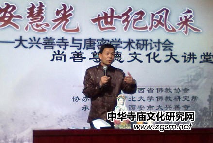 中國(guó)佛教新聞網(wǎng)陜西訊:2011年11月19日下午,“大興善寺與唐密學(xué)術(shù)研討會(huì)”系列活動(dòng)之“尚善尊德文化大講堂”在西安市大興善寺內(nèi)舉行,西北大學(xué)佛教研究所所長(zhǎng)、李利安教授應(yīng)邀作了題為《讓佛法智慧融入生活》的學(xué)術(shù)報(bào)告,來(lái)自西安市各地?cái)?shù)百名佛教文化愛(ài)好者聆聽(tīng)了此次講座。