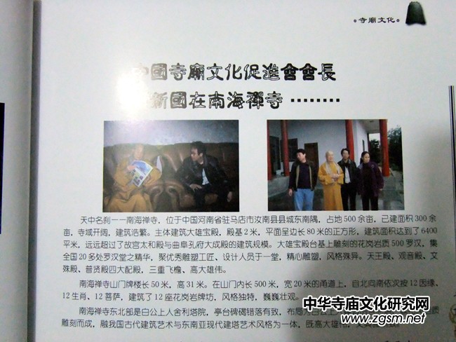 河南南海禪寺開(kāi)光時(shí)明乘長(zhǎng)老在百忙在親切接見(jiàn)中國(guó)寺廟文化促進(jìn)會(huì)靳會(huì)長(zhǎng),并與靳會(huì)長(zhǎng)等中國(guó)寺廟文化促會(huì)同仁共進(jìn)了午餐。上圖為我會(huì)會(huì)刊所發(fā)的報(bào)道。
