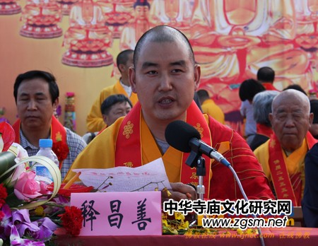 省佛教協(xié)會副會長、五臺山黛螺頂住持昌善法師宣讀省佛協(xié)賀信