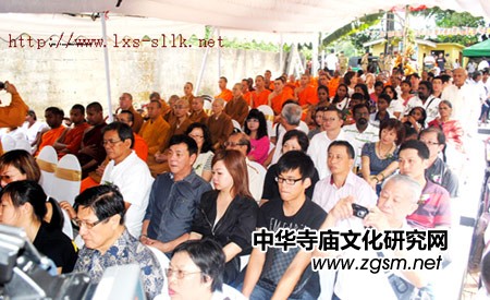 9點15分,國際佛教中心舉行的奠基儀式在The Dhamma Voice international Buddhist Centre, 99/2, Pattiwila Road, Gonawala, Kelaniya, Srilanka 舉行,斯里蘭卡長老Mahanayake Thera、泰國高僧Seck Kong Hian、新加坡學航法師主法,上百位僧伽齊誦經(jīng)典,梵音嘹亮。