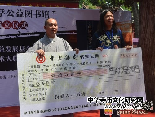 石海先生向少林慈幼院捐款(圖片來源:菩薩在線 攝影:妙靜)