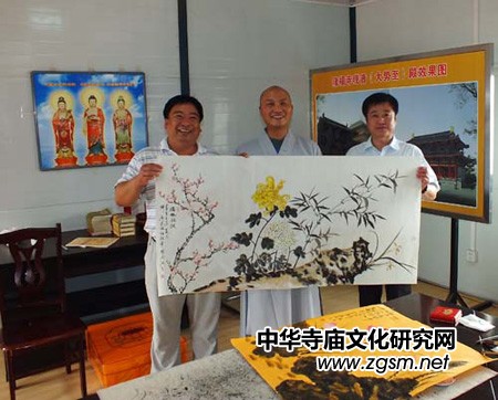 河北訊 2012年6月24日,天津大港美術(shù)家協(xié)會常務(wù)副主席竇國春,大港書法家協(xié)會理事李岳川,大港書法家協(xié)會理事、天津印社理事王鐵鎖等知名書法繪畫藝術(shù)家一行參訪河北廊坊隆福寺,并現(xiàn)場制作、敬獻(xiàn)墨寶。廊坊市佛教協(xié)會會長、隆福寺住持慧廣法師接待了竇國春一行。
