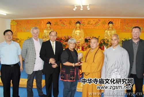 為促進奧地利少林文化愛好者及當?shù)匦疟妼ι倭炙、少林文化的認識和理解,永信法師在奧地利少林文化中心佛堂為大家作少林文化專題講座,從少林寺歷史、少林文化的傳承、少林寺近年來的文化交流活動等方面,深入淺出地闡釋了少林文化的內(nèi)在深蘊。他在講座中說道:“作為中國佛教禪宗祖庭,少林寺從建寺至今已有1500余年的歷史,在這期間,少林寺的僧團傳承、文化傳承從未間斷過。佛教追求自由、平等,倡導慈悲,能夠引導歐洲人積極的生活。少林禪修的目的是達到內(nèi)心的清凈與安詳,能夠給大家?guī)斫】档纳罘绞。”他在講話中還提到,少林寺與奧地利之間的緣分深厚,2010年9月成立歐洲少林聯(lián)合會,就在奧地利首都維也納宣布成立的,“現(xiàn)在的奧地利少林文化中心,旨在弘揚悠久、優(yōu)秀的少林文化,與大家共享人類文化遺產(chǎn)。奧地利總理法耶曼先生,也是該文化中心的?。”