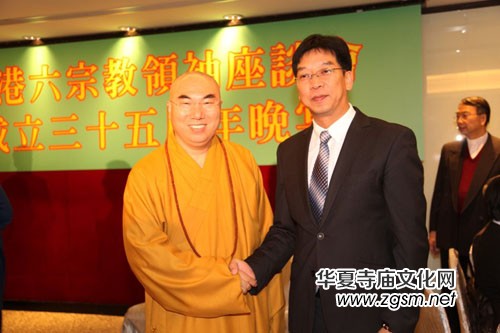 今年欣逢六宗教領(lǐng)袖座談會成立35周年,2013年11月28日假港島富豪香港酒店舉行「香港六宗教領(lǐng)袖座談會成立三十五周年晚宴」以志慶賀,并邀請香港中文大學(xué)文學(xué)院副院長賴呂超教授、中文大學(xué)文化及宗教研究系系主任黎志添教授及中文大學(xué)中國文化研究所所長李熾昌教授為晚會嘉賓。