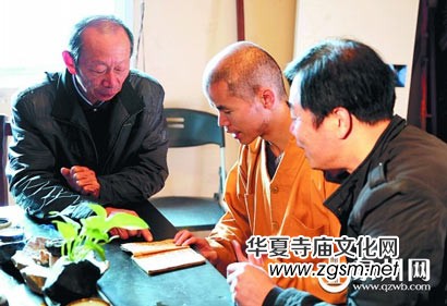 泉州少林寺武僧團(tuán)副團(tuán)長(zhǎng)理剛(中)在研究古書(shū)(圖片來(lái)源:泉州網(wǎng)