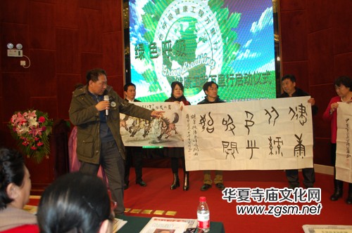 啟動儀式上,組委會向到會的單位頒發(fā)了“綠色呼吸健康工程萬里行公益活動”發(fā)起單位證牌。本報主編靳新國特為活動書寫了“健康從綠色呼吸開始”。