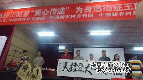 大興區(qū)安定鎮(zhèn)杜莊屯村黨部書記高瑞海,國茶博會書畫院院長吳大石,國書畫篆刻家協(xié)會席曹心國新農村雜志社常務副社長劉漢華女士,國報業(yè)協(xié)會集報分會副秘書長王起君,《作家報集報?書畫世界》執(zhí)、中國新農村雜志社文化部、中國擁軍新聞人物聯(lián)盟副秘書長李法明,黃賓虹書畫藝術研究長李玉香女士,國企業(yè)報道藝術資本理事會副、《作家報集報?書畫世界編梅麗瓊女士先后了發(fā)言。在主席臺上就和參加次捐活動的有國家文化部鄉(xiāng)土藝術協(xié)會文化產業(yè)部部長、中國新農村雜志社常務副社長、中國美協(xié)會員、中國書協(xié)(香港)副席,名書畫家殿勝,國書畫篆刻家協(xié)會執(zhí)席徐敏森等領導。書法家馬永寄來的巨幅書法長卷、著名書法家梅麗瓊女士創(chuàng)的題為弘揚能量愛心傳遞八尺橫幅隸書在主席臺上一展示,很快引起了心靈共鳴和動,她發(fā)自肺腑催人淚下的發(fā)言感動了場的每位位愛心人士。