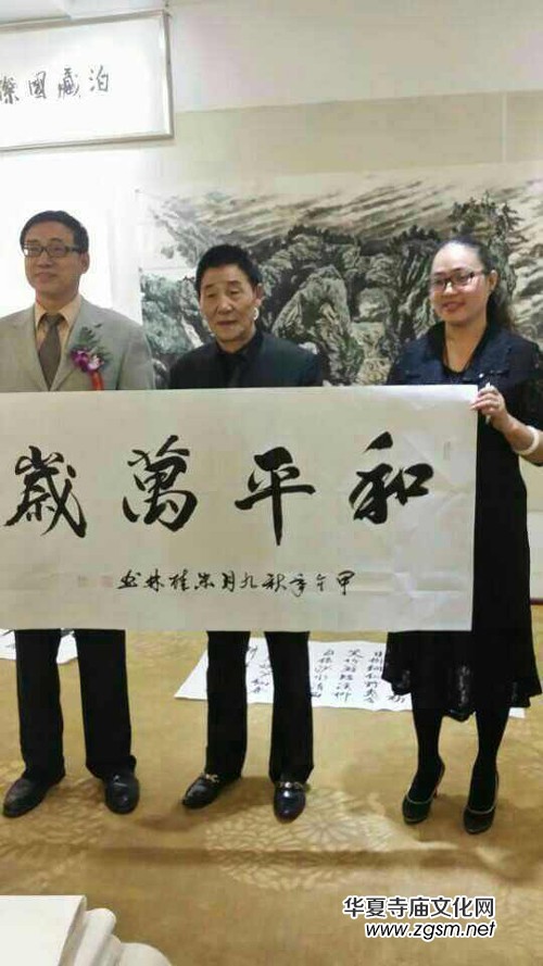 本次展覽共展出一百五十幅作品,王鳳閣老師的繪畫作品結(jié)構(gòu)飽滿、布局舒適、層次感強,傳統(tǒng)的東西不少,有文化底蘊,山水大氣磅礴,仕女優(yōu)雅細膩: 朱桂林老師的書法作品以其獨創(chuàng)一筆雙勾書法,該書法藝術(shù)風(fēng)格獨特,真可謂是傳統(tǒng)書法的高度升華。王鳳閣、朱桂林兩位老師積極參加和平周各項活動,用手中的筆不停地撒播著和平的種子。