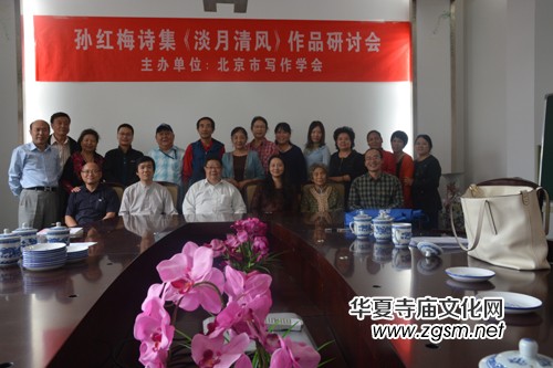 由北京市寫(xiě)作學(xué)會(huì)主辦、北京市寫(xiě)作學(xué)會(huì)京東分會(huì)承辦的孫紅梅詩(shī)集《淡月清風(fēng)》作品研討會(huì)于9月26日在中央財(cái)經(jīng)大學(xué)舉行。著名詩(shī)歌評(píng)論家、首都師范大學(xué)文學(xué)院副院長(zhǎng)、博士生導(dǎo)師張?zhí)抑藿淌,剛從美?guó)訪學(xué)歸來(lái)的詩(shī)人、中國(guó)政法大學(xué)新聞與傳播學(xué)院王永亮博士,中央財(cái)經(jīng)大學(xué)新聞系陳端博士,京東分會(huì)會(huì)長(zhǎng)、三河市文聯(lián)主席詩(shī)人、《蒼生文學(xué)》主編劉樹(shù)滋老師,北京市寫(xiě)作學(xué)會(huì)常務(wù)副會(huì)長(zhǎng)、作家王矢老師,北京市寫(xiě)作學(xué)會(huì)秘書(shū)長(zhǎng)譚云明教授等專家學(xué)者及會(huì)員代表30余人,與詩(shī)人孫紅梅女士一起,面對(duì)面地探討了她的詩(shī)集《淡月風(fēng)清》的創(chuàng)作隨想以及風(fēng)格特點(diǎn)。大家認(rèn)為,孫紅梅的詩(shī)歌創(chuàng)作,為當(dāng)今詩(shī)壇帶了一股清新典雅而富大氣的創(chuàng)作之風(fēng),是北京市寫(xiě)作學(xué)會(huì)會(huì)員中冉冉升起的一顆璀璨“詩(shī)星”。