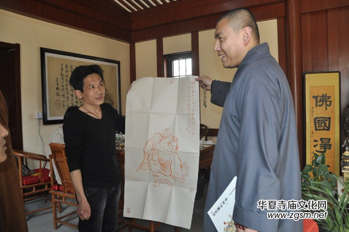 靳新國會(huì)長(zhǎng)分別贈(zèng)送了達(dá)賢法師、愿勝法師書法作品,理事林清泉也贈(zèng)送了達(dá)賢法師白描羅漢。